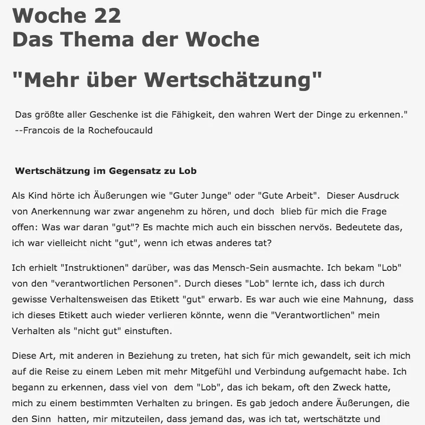 Wir bieten dazu ein PDF-Formular, das Du für deine persönliche wöchentliche Dokumentation deiner Erfahrungen zu den Texten und Übungen verwenden und bis spätestens 14 Tage nach dem Ende des Kurses an uns schicken kannst.